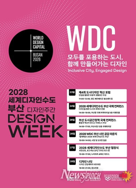 또한 26일에는 시청 및 도모헌 일원에서 2028 세계디자인수도 부산 시민 공감 라운지가 열려 ‘2028 WDC 캠페인’을 전개한다.