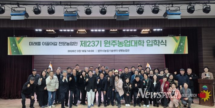 뉴스펀치 조평훈 기자 | 원주시농업기술센터는 지난 18일 센터 생명농업관에서 ‘제23기 원주농업대학 입학식’을 개최하고, 지역 농업의 미래를 이끌 전문농업경영인 양성을 위한 교육과정을 시작했다.