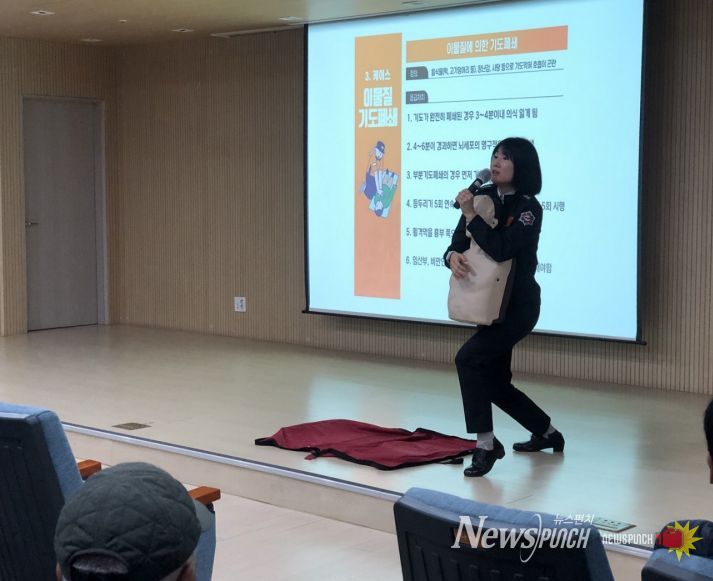 이날 교육은 김은경 강사가 진행했으며, 심폐소생술의 중요성과 함께 하임리히법, 저혈당 쇼크, 낙상사고 등 일상에서 발생할 수 있는 다양한 응급상황에 대한 대처 방법을 중심으로 이뤄졌다. 특히 실습을 병행해 참여자들이 실제 상황에서도 당황하지 않고 신속․정확하게 대응할 수 있도록 도왔다.