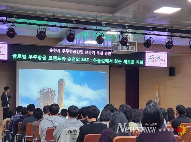 뉴스펀치 최영남 기자 | 순천시는 지난 18일 시가 추진하고 있는 우주산업 정책에 대한 직원들의 이해를 높이기 위해 전문가 초청 특별 강연을 시청 대회의실에서 개최했다.