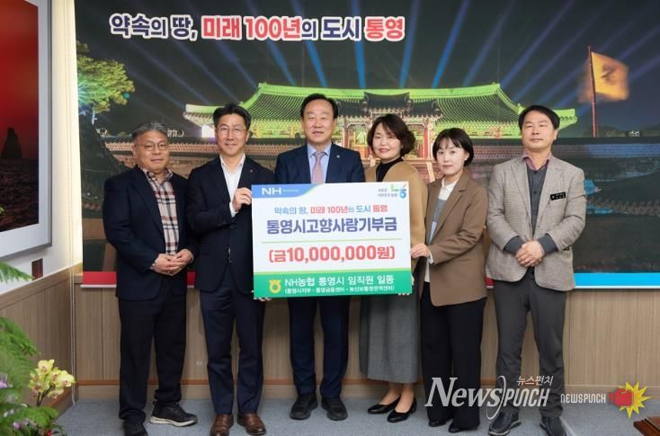 뉴스펀치 박세훈 기자 | 통영시는 19일 관내 NH농협 임직원 일동이 고향사랑기부금 1,000만 원을 기부했다고 밝혔다.