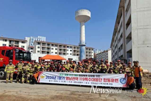 뉴스펀치 박세훈 기자 | 경상남도소방본부(본부장 이동원) 119특수대응단은 19일 창원시 상남1구역 재건축현장 일원에서 영남권 7개 특수대응단과 함께 도시탐색구조 합동훈련을 실시했다고 밝혔다.