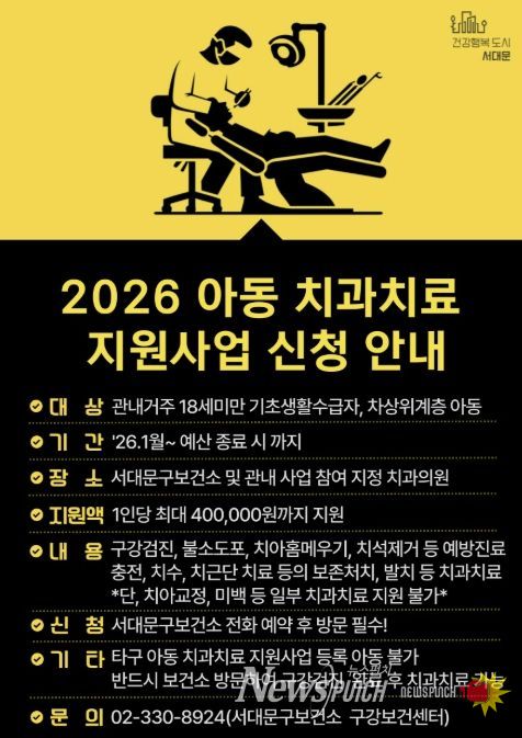 뉴스펀치 박상훈 기자 | 서대문구가 취약계층 아동의 구강건강을 위해 ‘아동 치과 치료 지원사업’을 확대 추진한다고 20일 밝혔다.