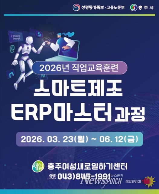 뉴스펀치 이현승 기자 | 충주여성새로일하기센터는 여성의 경제활동 참여 확대와 취업 역량 강화를 위해 2026년 직업교육훈련 『스마트제조 ERP마스터 과정』을 개강했다.
