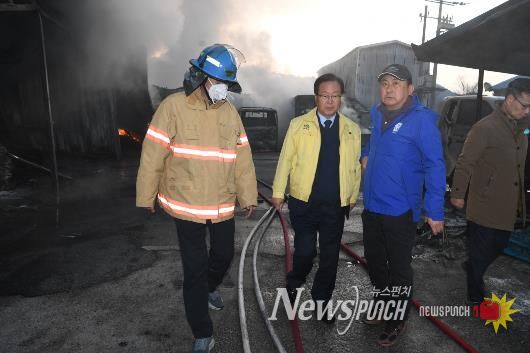 유 군수는 화재 소식을 접한 즉시 재난안전과, 환경위생과, 용진읍 관계자들과 함께 현장으로 출동해 상황을 직접 지휘하며, 주민 피해 최소화와 신속한 진화를 독려했다.