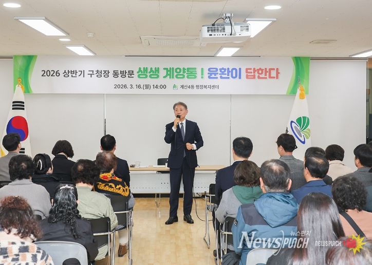 뉴스펀치 정홍균 기자 | 인천광역시 계양구는 지난 3월 12일부터 19일까지 12개 동을 순회하며 진행한 2026년 상반기 구청장 동방문 ‘생생계양통 윤환이 답한다’를 성공적으로 마무리했다.