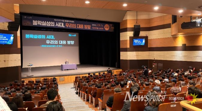 이번 강연은 “불확실성의 시대, 우리의 대응방향”이라는 주제로 진행됐으며, 급변하는 국제 정세와 기후 변화, 신기술 발전 등 다양한 글로벌 이슈 속에서 대한민국과 지역사회가 나아가야 할 방향을 모색하는 뜻깊은 자리였다.