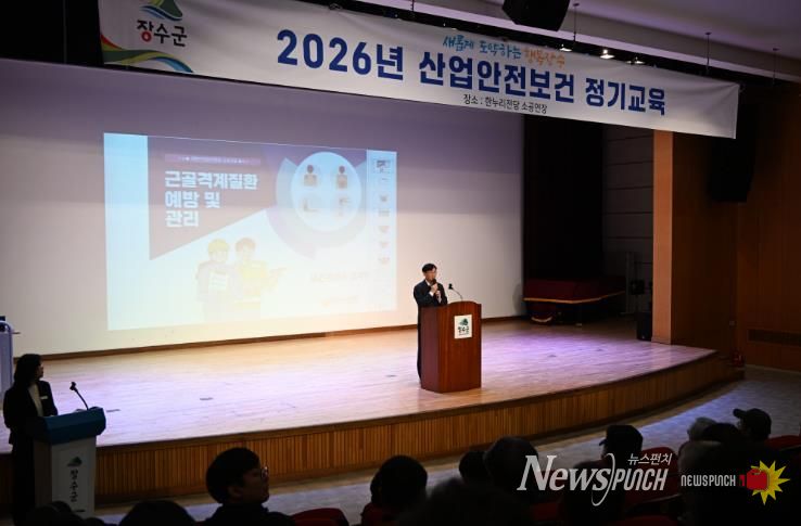뉴스펀치 정홍균 기자 | 장수군은 지난18일 한누리전당 소공연장에서 군 소속 현업 근로자 300여 명을 대상으로 2026년 1분기 산업안전·보건 근로자 정기교육을 실시했다고 밝혔다.
