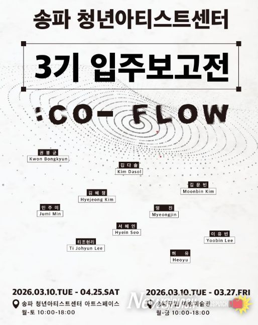 뉴스펀치 박상훈 기자 | 서울 송파구는 송파청년아티스트센터 제3기 입주작가 10인의 첫 전시 ‘Co-Flow’를 3월 10일 개최했다고 밝혔다.