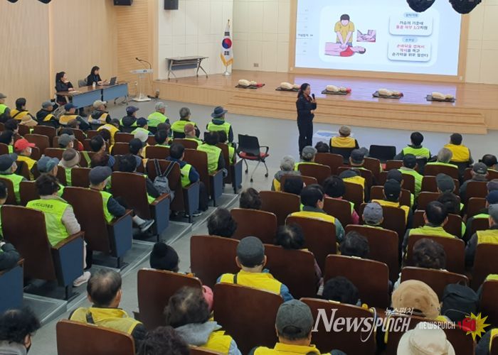 이번 교육은 최근 노인일자리 참여자 증가와 계절적 요인으로 인한 안전사고 위험이 높아짐에 따라, 현장 최일선에서 활동을 이끄는 팀장 어르신들의 안전관리 역량을 강화하고 사고 발생 시 신속한 대응 체계를 구축하기 위해 마련됐다.