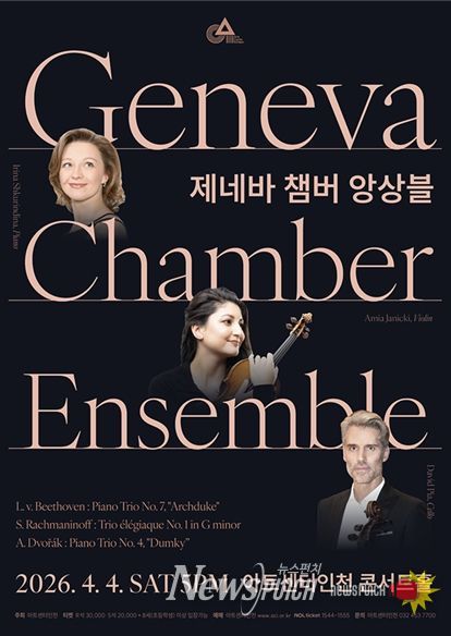 뉴스펀치 정홍균 기자 | 아트센터인천은 세계적인 국제 음악 콩쿠르 수상자들로 구성된 스위스 대표 실내악 단체인 '제네바 챔버 앙상블'의 내한 공연을 오는 4월 4일 오후 5시 아트센터인천 콘서트홀에서 선보인다. 이번 공연은 세계 무대에서 검증된 솔리스트 3인이 빚어내는 정교하면서도 밀도 높은 사운드를 통해 실내악의 진정한 매력을 경험할 수 있는 기회가 될 것이다.