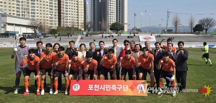 뉴스펀치 박상훈 기자 | 포천시는 포천시민축구단이 지난 22일 열린 2026 케이(K)3리그 홈 개막전에서 경주한수원축구단을 2대1로 제압하며 값진 승리를 거뒀다고 밝혔다.