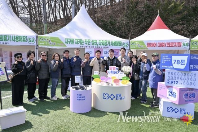 뉴스펀치 박상훈 기자 | 양평군은 지난 21일부터 22일까지 이틀간 열린 제27회 양평단월고로쇠축제에서 군이 자체 제작한 다회용기 12만 개를 사용해 약 5.6톤의 탄소를 감축했다고 밝혔다. 이는 소나무 약 45그루가 60년간 흡수하는 이산화탄소량에 해당하는 수준이다