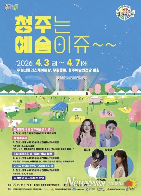 뉴스펀치 이현승 기자 | 청주시의 대표 봄 축제인 제23회 청주예술제가 오는 4월 3일부터 7일까지 5일간 무심천 롤러스케이트장(무심동로 일부)과 청주예술의전당 일원에서 개최된다.