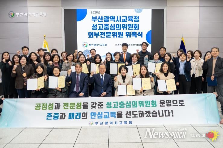 뉴스펀치 김윤걸 기자 | 부산광역시교육청은 지난 19일 오후 교육청 국제회의실에서 ‘성고충심의위원회 외부전문위원 위촉식 및 역량강화 연수’를 열고 23명의 외부전문위원에 대한 위촉장을 수여했다고 밝혔다.
