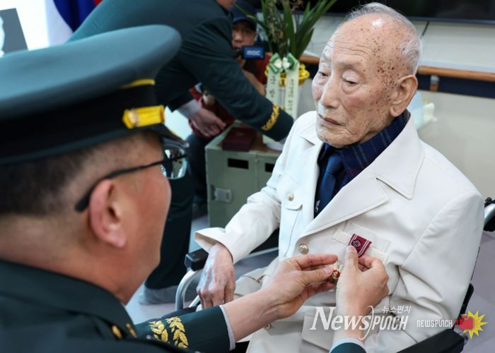 뉴스펀치 박상훈 기자 | 영암군이 6·25전쟁 참전유공자 이완옥(96세) 어르신에게 무공훈장을 전수하며 국가를 위한 헌신과 공훈을 기렸다고 밝혔다.