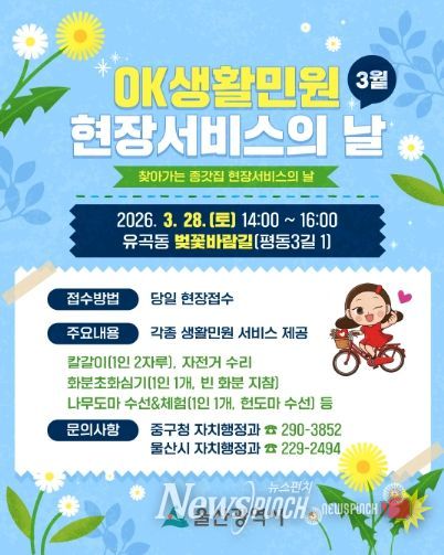 뉴스펀치 김윤걸 기자 | 울산시는 ‘2026년 오케이(OK)생활민원 현장서비스의 날’을 오는 3월 28일 중구 유곡동을 시작으로 본격 개시한다고 밝혔다.