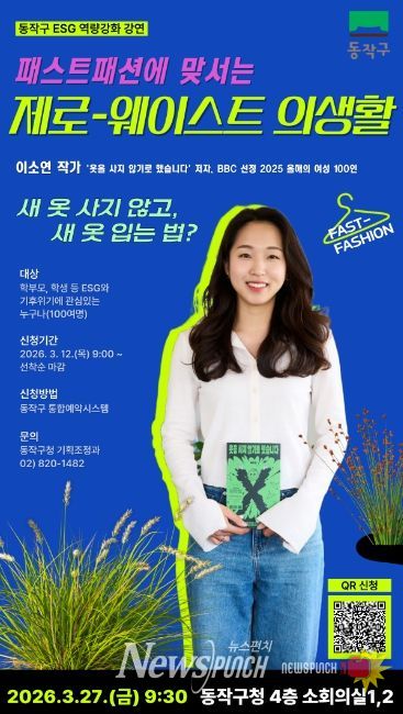 교육 내용은 ▲쇼핑의 역설 ▲패션 산업의 허와 실 ▲똑똑한 의생활 기술 등으로 구성되며, 책임 있는 소비를 통한 생활 속 ESG 실천 방법과 ‘새 옷 사지 않기’ 도전기를 통해 얻게 된 지속 가능한 삶의 태도를 함께 살펴볼 예정이다.