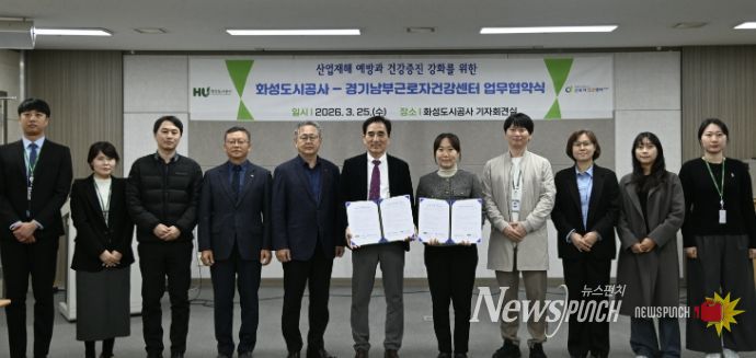 뉴스펀치 박상훈 기자 | 화성도시공사는 25일 경기남부근로자건강센터(경기남부직업트라우마센터)와 근로자 건강증진과 직업 트라우마 예방, 심리 지원체계 강화를 위한 업무협약을 체결했다고 밝혔다.