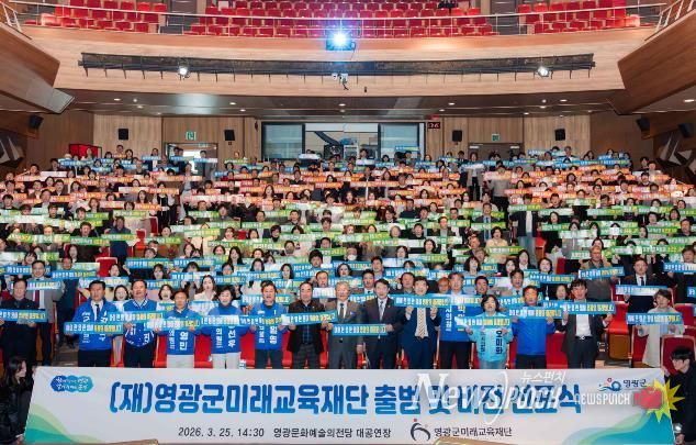뉴스펀치 김용희 기자 | (재)영광군미래교육재단이 지난 25일 '영광군미래교육재단 출범 및 비전선포식'을 개최하고, 미래인재 양성과 지속 가능한 교육지원 체계 구축을 위한 힘찬 출발을 알렸다.