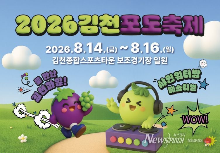 뉴스펀치 박세훈 기자 | 김천시는 대한민국 대표 여름 과일 축제로 8월 14일부터 16일까지 개최될 '2026 김천포도축제'를 한층 새롭고 차별화된 콘텐츠로 선보이기 위해 본격적인 준비에 돌입했다고 밝혔다.