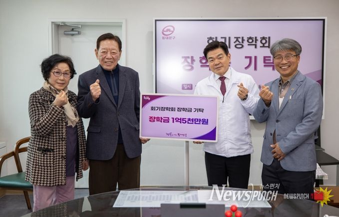 뉴스펀치 박상훈 기자 | 서울 동대문구는 26일 구청장실에서 회기장학회(이사장 박정철)로부터 지역 인재 양성을 위한 장학금 1억 5,000만원을 기탁받았다고 밝혔다.