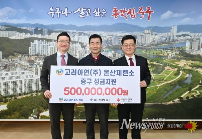 한편, 고려아연㈜ 온산제련소는 지난 2016년부터 올해까지 11년째 매년 중구에 후원금 5억 원을 기부하고 있다.