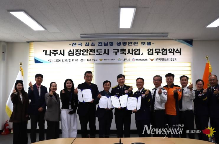 나주소방서는 금일 오전 11시 전남소방본부, 나주시, 대한심폐소생협회, 나주시의용소방대연합회와 함께 **‘나주시 심장안전도시 구축을 위한 업무협약(MOU)’을 체결했다고 밝혔다.