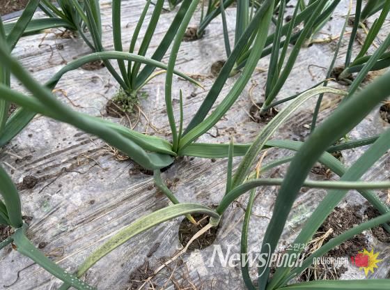 올해는 봄철 잦은 비와 일조량 부족으로 양파가 웃자라거나 뿌리 활력이 떨어져 작물 전반의 세력이 연약해진 상태다.