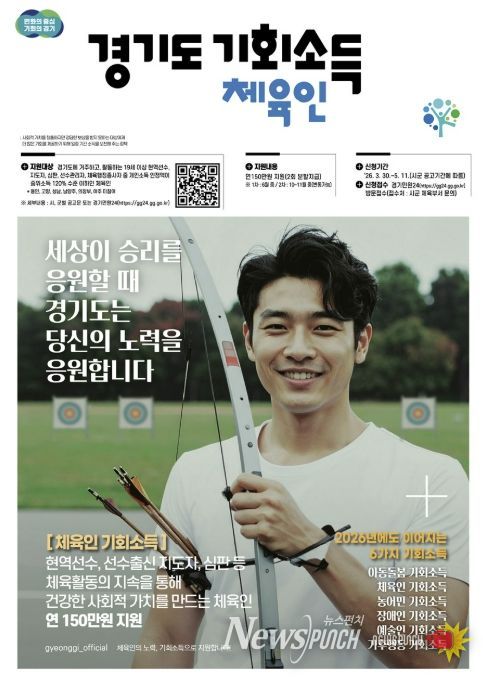 시 관계자는 “체육인 기회소득은 체육인의 직업적 권리를 두텁게 보호하기 위해 지속적인 활동을 지원하는 사업”이라며 “스포츠가 가진 공익적 가치가 우리 사회 전반에 선순환 되길 기대한다”고 밝혔다.