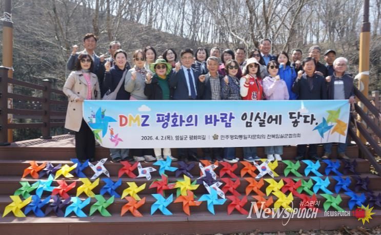 뉴스펀치 정홍균 기자 | 민주평화통일자문회의 임실군협의회는 지난 2일, 임실군 사선대 국민관광지에서 자문위원 30여 명이 참석한 가운데 ‘DMZ에서 고이 담아 온 평화의 바람(HOPE)’을 상징하는 바람개비를 설치하여 ‘함께걷는 평화의 바람길’을 조성했다.