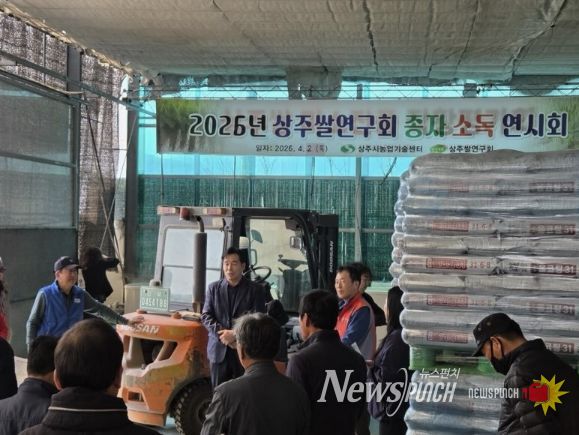 뉴스펀치 박세훈 기자 | 상주시농업기술센터는 4월 2일 상주쌀연구회와 농업인 40여 명이 참여한 가운데 성동뜰 소재 육묘장에서 벼 종자소독 연시회를 실시했다.
