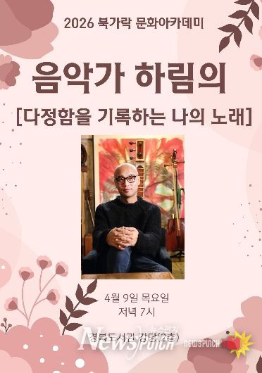 뉴스펀치 박세훈 기자 | 경북도서관은 오는 4월 9일 저녁 7시, 북가락문화아카데미 3회차 프로그램으로 음악가 하림의 공연 ‘다정함을 기록하는 나의 노래’를 개최한다.