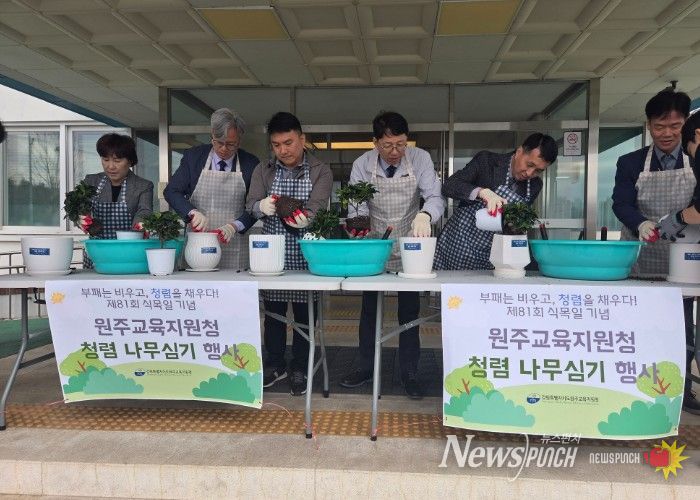 뉴스펀치 조평훈 기자 | 강원특별자치도원주교육지원청은 4월 6일 오전 9시 30분, 원주교육지원청 청사 현관 앞에서 제81회 식목일 기념 ‘청렴 나무심기’ 행사를 실시했다.