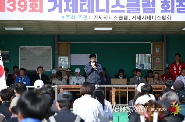 뉴스펀치 박세훈 기자 | 거제시 테니스 동호인들의 화합의 장인 ‘제39회 거제테니스클럽 회장배 테니스대회’가 지난 5일 시립테니스장을 비롯한 관내 3개 구장에서 성황리에 마무리됐다.