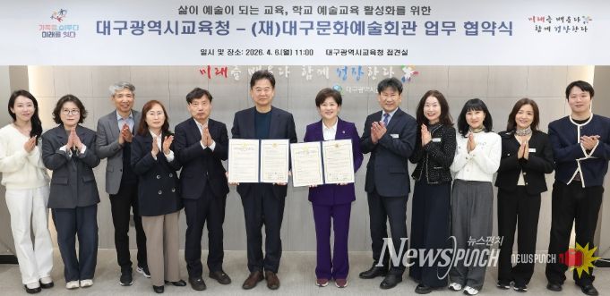 뉴스펀치 조평훈 기자 | 대구시교육청은 4월 6일 오전 11시, 대구시교육청 접견실에서 (재)대구문화예술회관과 ‘학교 예술교육 활성화’를 위한 업무협약(MOU)을 체결했다.