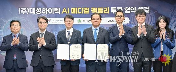 뉴스펀치 조평훈 기자 | 대구광역시는 4월 7일 시청 산격청사에서 초정밀부품 제조 전문기업인 ㈜대성하이텍(대표 최우각, 최호형)과 ‘인공지능(AI) 자율제조 시스템 기반 메디컬 팩토리’ 건립을 위한 투자협약을 체결했다.