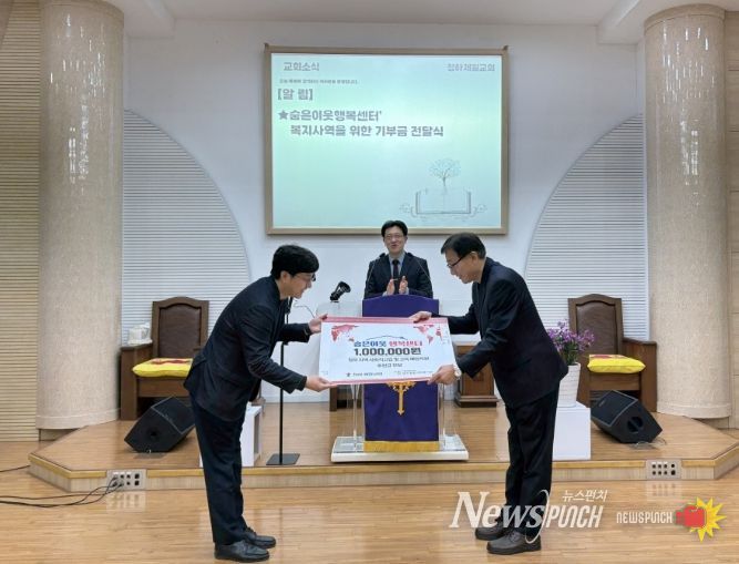 뉴스펀치 박세훈 기자 | 청하제일교회는 최근 포항시 창포종합사회복지관에서 운영하는 ‘청하 숨은이웃 행복센터’를 방문해 지역 내 사회적 고립 가구 발굴 및 지원을 위해 후원금 100만 원을 전달했다.