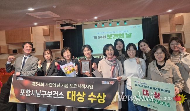 뉴스펀치 박세훈 기자 | 포항시 남구보건소는 제54회 보건의 날 기념 ‘보건시책사업 우수기관 평가’에서 대상을 수상했다.