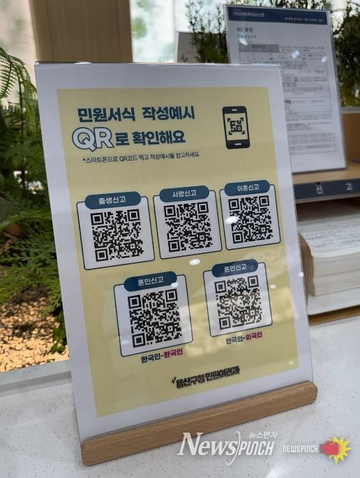 뉴스펀치 박상훈 기자 | 서울 용산구가 구민들이 가족관계등록신고서 작성을 수월하게 할 수 있도록 주요 서식 4종에 대해 정보무늬(QR코드) 작성 예시 안내 서비스를 제공한다.