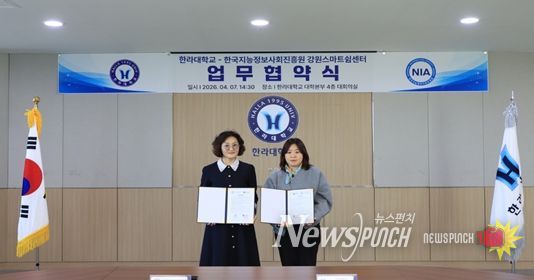 뉴스펀치 조평훈 기자 | 강원특별자치도 강원스마트쉼센터는 4월 7일 오후 2시 30분 한라대학교 학생생활상담센터와 대학생의 스마트폰 과의존 예방 및 건강한 디지털 사용문화 조성을 위한 업무협약을 체결했다고 밝혔다.