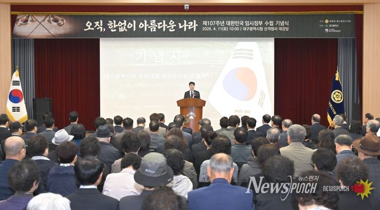 뉴스펀치 조평훈 기자 | 대구광역시는 대한민국 임시정부 수립 제107주년을 맞아 4월 11일 오전 10시, 시청 산격청사 대강당에서 기념식을 거행했다.