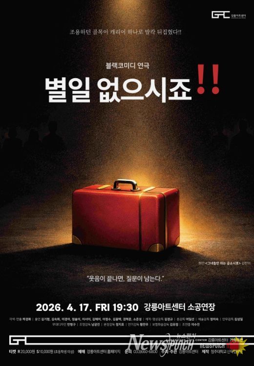 뉴스펀치 조평훈 기자 | 강릉아트센터는 오는 17일 오후 7시 30분, 소공연장에서 블랙코미디 연극 '별 일 없으시죠!!'를 선보인다.