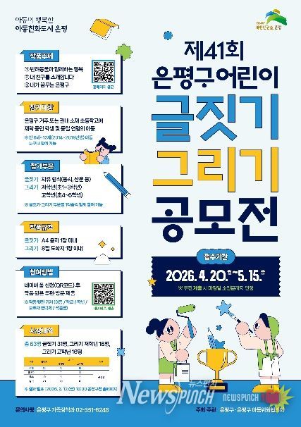 뉴스펀치 박상훈 기자 | 서울 은평구는 어린이주간이 포함된 5월을 맞아, 은평구 거주 아동을 대상으로 ‘제41회 은평구 어린이 글짓기·그리기 공모전’을 개최한다고 밝혔다.