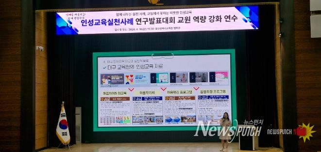 뉴스펀치 조평훈 기자 | 대구시교육청은 지난 4월 10일, 시교육청 행복관에서 교원 및 기관 업무 담당자 100여 명을 대상으로 ‘2026학년도 인성교육실천사례 연구발표대회 교원역량강화 연수’를 개최했다.