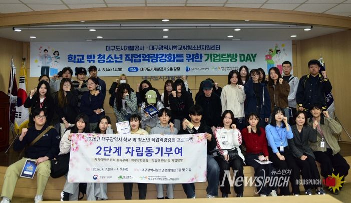 뉴스펀치 조평훈 기자 | 대구도시개발공사는 지난 4월 8일 공사 사옥에서 지역 학교 밖 청소년들을 대상으로 진로탐색 및 자립동기 강화를 위한 기업탐방 프로그램을 운영했다.