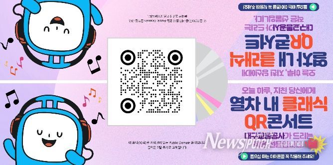 뉴스펀치 조평훈 기자 | 대구교통공사는 이용객의 정서적 안정과 쾌적한 도시철도 환경 조성을 위해 열차 내 QR코드를 활용한 클래식 음악 콘텐츠 서비스를 4월 13일부터 시범 운영한다.
