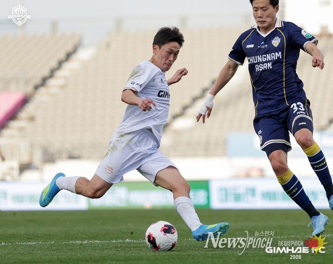 뉴스펀치 박세훈 기자 | 김해FC2008이 적지에서 값진 동점골을 터뜨리며 기나긴 무승의 늪에서 탈출할 발판을 마련했다. 김해는 12일 오후 4시 30분 이순신종합운동장에서 열린 충남아산FC(이하 ‘아산’)와의 원정 경기에서 1-1 무승부를 기록했다. 이로써 김해는 시즌 6경기만에 귀중한 첫 승점을 수확하는 데 성공했다. 반면 아산은 이날 무승부로 팀 기록인 13경기 연속 득점 행진을 이어가는 데 만족해야 했다.