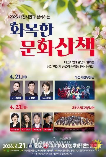뉴스펀치 이현승 기자 | 대전시립예술단은 4월 21일과 23일 오후 7시 30분, 동구청 12층 강당에서 봄의 시작과 함께‘2026 화목한 문화산책’의 첫 공연을 선보인다.
