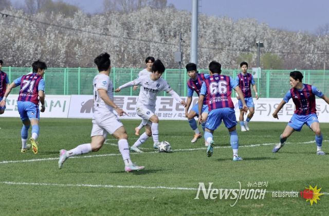 이날 경기는 양 팀 모두 치열한 중원 싸움을 펼치며 쉽게 주도권을 내주지 않는 흐름으로 전개됐다. 제천은 전반 초반부터 수비 진영을 견고하게 유지하며 상대의 공격을 효과적으로 차단하고, 빠른 역습으로 득점 기회를 노렸다.